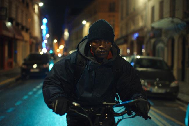 Honoring the tenets of Italian Neorealism or French Nouvelle Vague or Danish Dogme ’95, casting was done from the streets of Paris and the Guinean community there, where 23-year-old Abou Sangare emerged as a non-professional with no acting experience, having arrived in France at age 16. While Sangare did actual delivery work in the city to familiarize himself with the bike, the bag, the app, the phone, and the words to introduce himself to the clients and the restaurants where he collected the food, Lojkine re-wrote his script (as he had planned to do) to adapt it to the actors and their ways of speaking and being. The writer-director comments, “This is what I like about working with non-professional actors: “They come as they are, carrying their own world with them. It is up to me to welcome their singularity.”